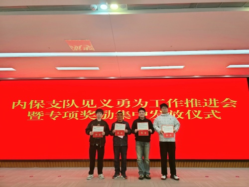 4月2日,南京市公安局内保支队见义勇为工作推进会暨专项奖励集中发放仪式举行。全市银行、医院、高校等40余家单位参加会议,我校4名师生员工获南京市见义勇为专项表彰。